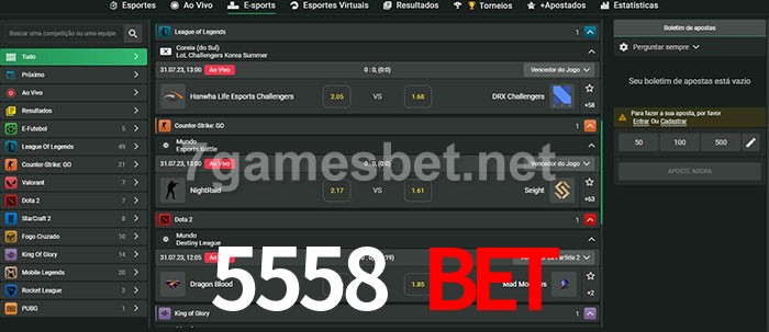 O 5558 Bet oferece uma grande seleção de opções de apostas em e-sports com probabilidades competitivas